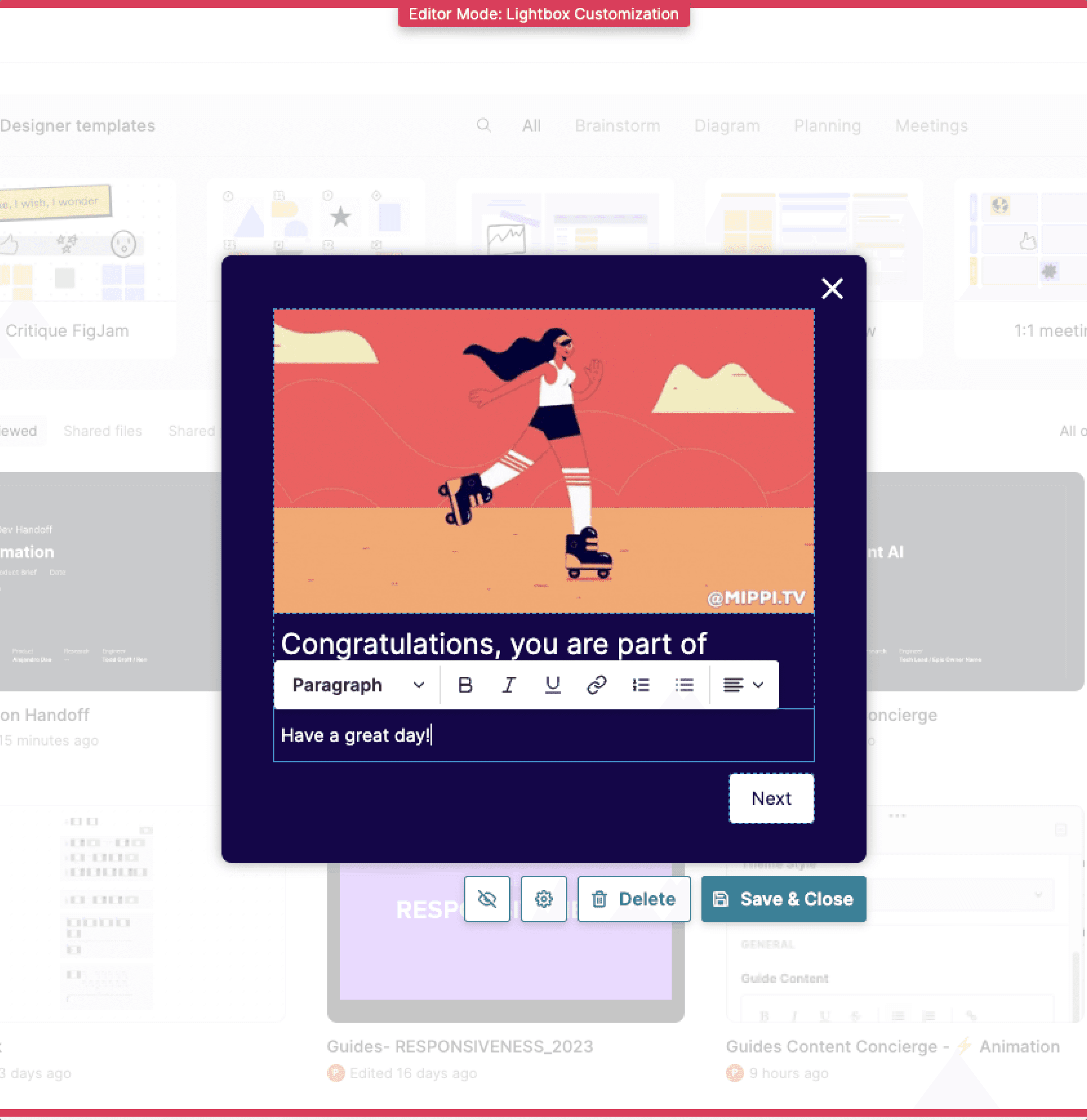 It was pretty exciting to carry out end-to-end design of a first-of-its-kind feature that allows in-app guidance to be built and deployed across multiple apps wthin a single guide!