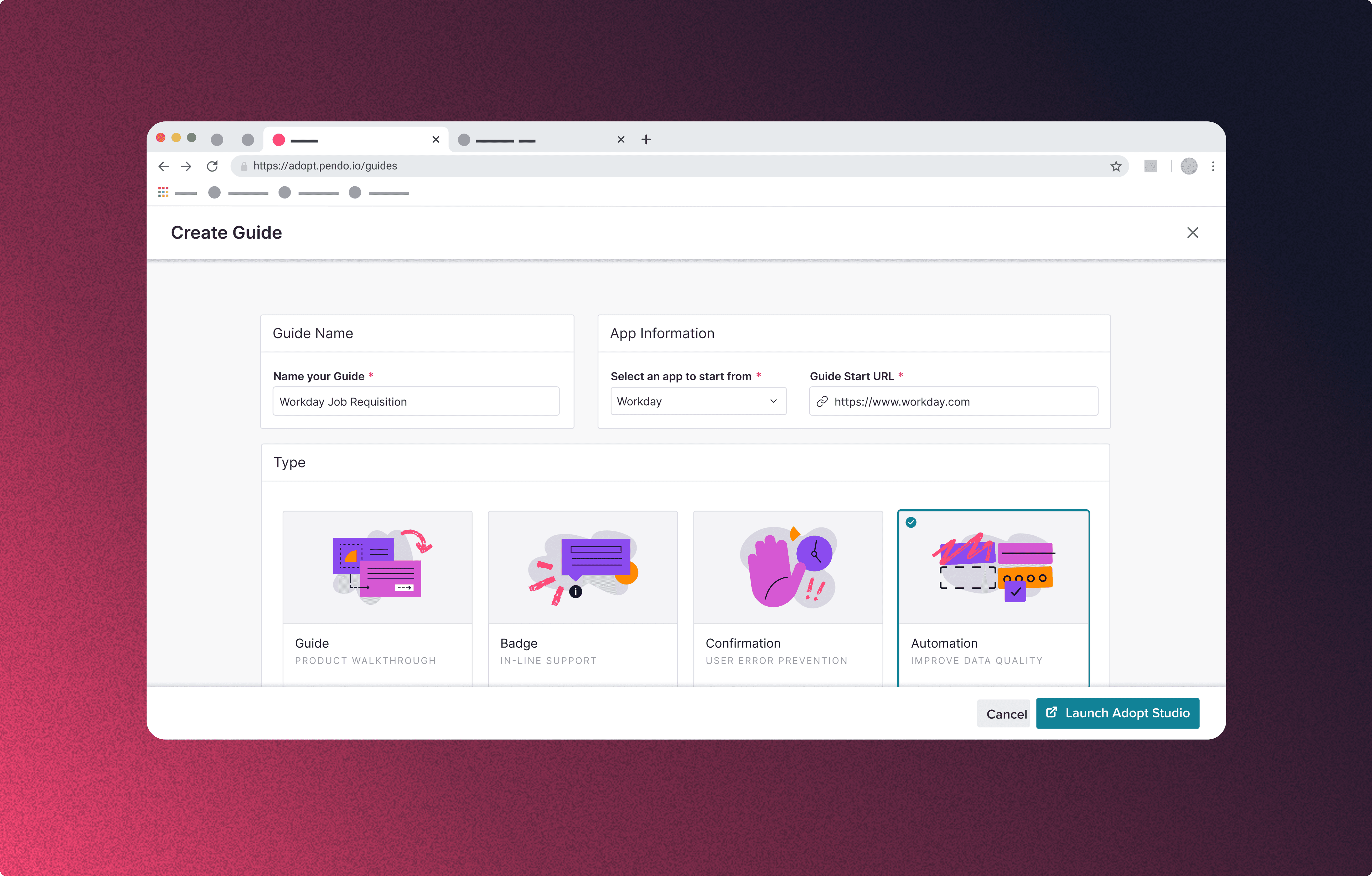Pendo began as a company that empowers product teams to understand user behavior through in-app guidance and user research tools. There is a finite market for the product manager user persona, while a billion dollar digital adoption market lay untapped by the business. The goal was to make an impactful debut into digital adoption and prompt significant increase in revenue.